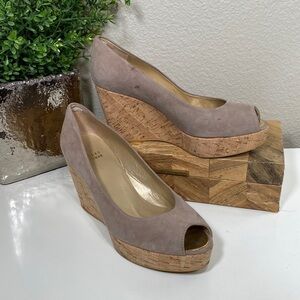 Stuart Weitzman Anna Cork Wedge Peep Toe Pump Haze Size 8
