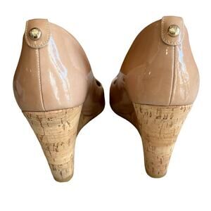 Stuart Weitzman Anna Cork Wedge Sandals Nude Patent Leather