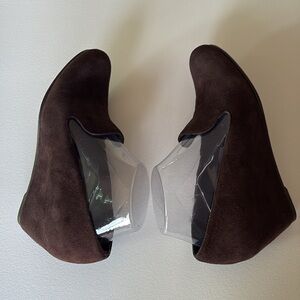 Stuart Weitzman Arise Suede Loafer Wedge Shoes Brown Neutral Minimalist Size 8.5