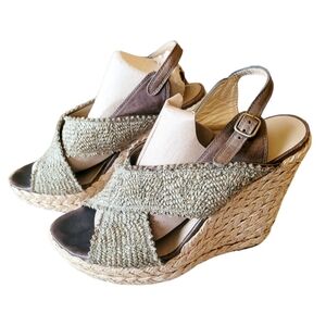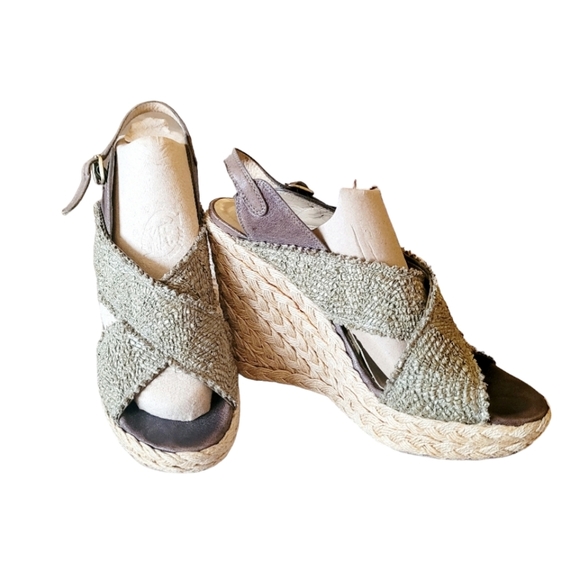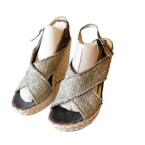 Stuart Weitzman Army Green Wedge Sandals Size 9 Summer Classic Beach