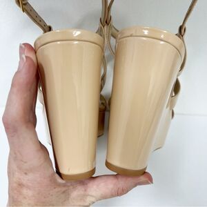 Stuart Weitzman Ave 75 Platform Wedge Strappy Nude Patent Leather Heels 10