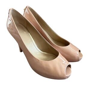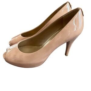 Stuart Weitzman Axis Adobe Aniline Patent Leather Peep Toe Heels Womens Size 7.5