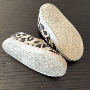 Stuart Weitzman Baby Nuggets animal print metallic gold trim slip on sneakers. Light toe running and orange discoloration on upper white sidewalls - see pics. Nonsmoking home.