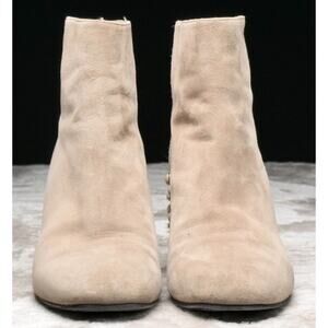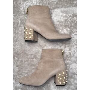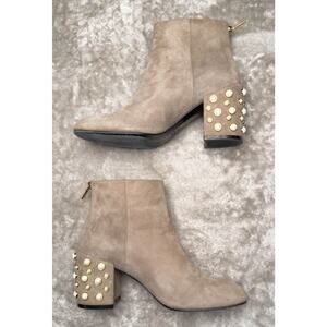 Stuart Weitzman Bacari Light Gray Suede Pearl Block Heel Boots Womens Size 8.5