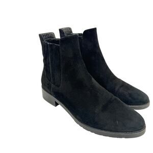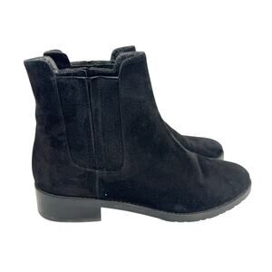 Stuart Weitzman Basilico Suede Flat Ankle Chelsea Boots Black Size 9