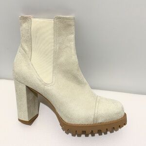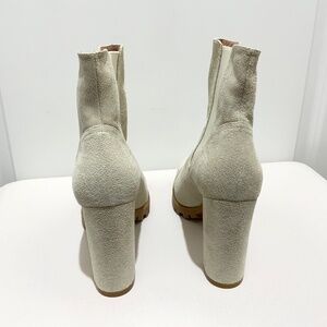 Stuart Weitzman Womens Beige Ivory Leather Boots Suede Goring Lug Sole Wenda Round Toe Block Heel Bootie