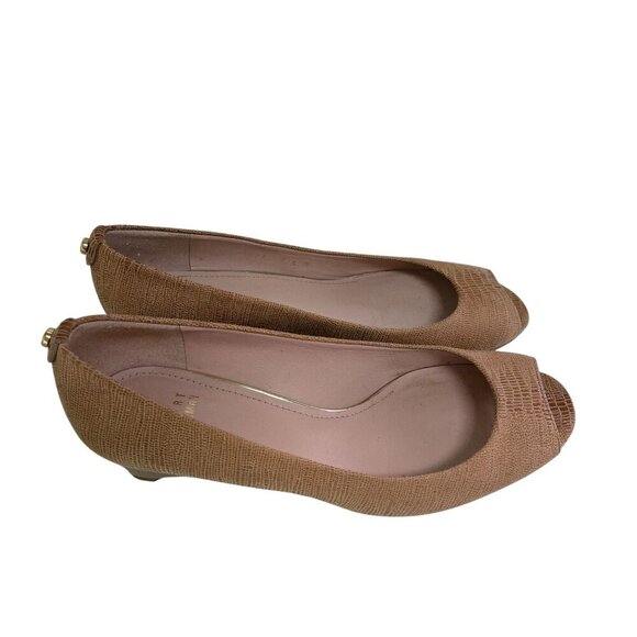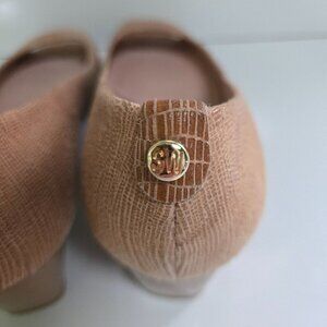 Stuart Weitzman Beige Lizard Embossed Logosavior Pumps Open Toe Size 7.5W