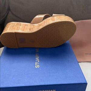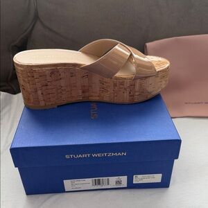 Stuart Weitzman Beige Patent Leather Wedge Sandals