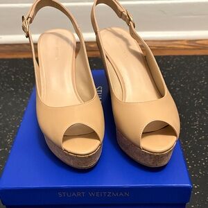 Stuart Weitzman Beige Peep-Toe Wedges