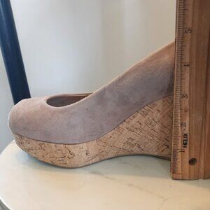 Stuart Weitzman Beige Suede Anna Cork Wedge Platform Peep Toe Pumps Size 9