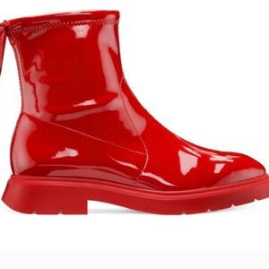 Red vinyl creates a striking pull-on boot that features a drawcord topline to create a better fit.