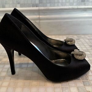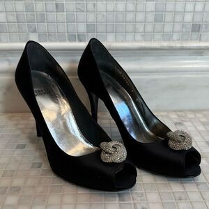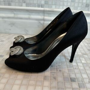 Stuart Weitzman Black 4 Inch Heels with Sequin Knots.
