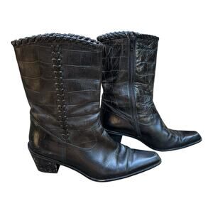 Stuart Weitzman Black Alligator Crocodile Leather Reptile Boots Size 8.5 Point