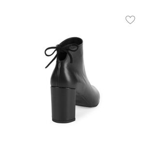 Crafted in a smooth leather, these booties feature a block heel and tie at back.