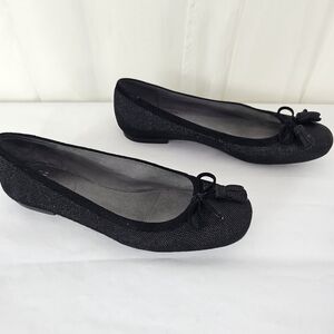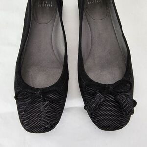Stuart Weitzman Black Ballet Flats Textured Bow Tassel Size 7.5