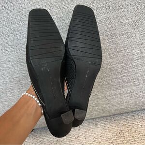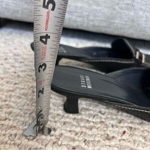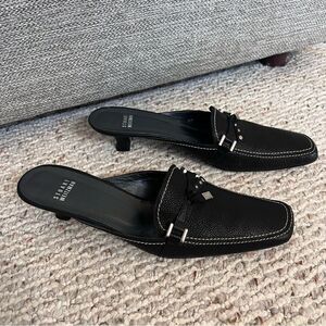 Stuart Weitzman Black Calf Pebbled Leather Tassel Mules