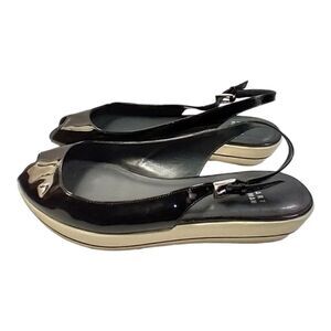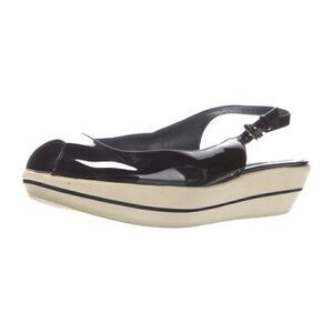 Stuart Weitzman | Black Colorblock Slingback Patent Wedge Peep Toe Pump | 8