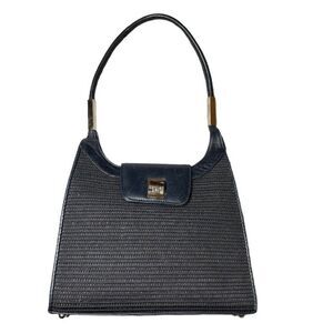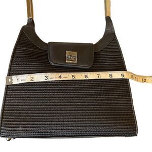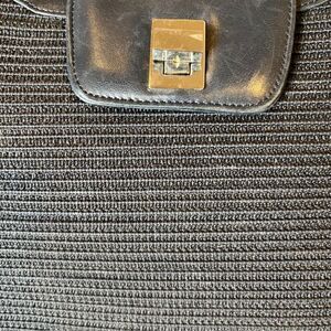 Stuart Weitzman Black Crochet Handbag Silver Hardware Black Strap