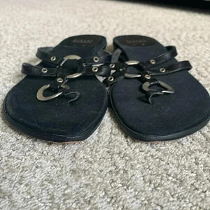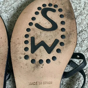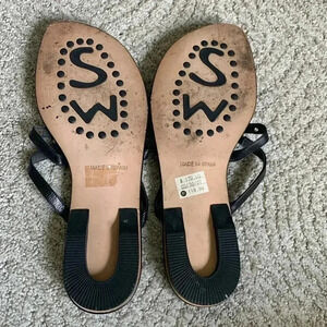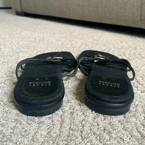 Stuart Weitzman Black Flat Sandals with silver metal accents