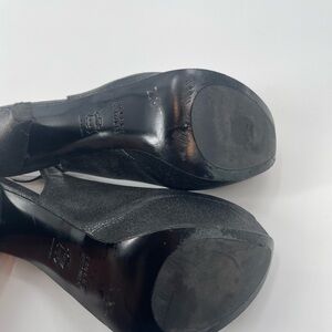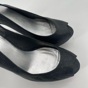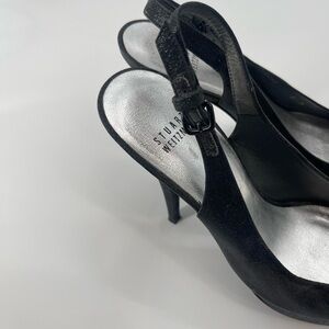 Stuart Weitzman Black Glitter and Leather Peep Toe Slingback Pumps heels size 8M