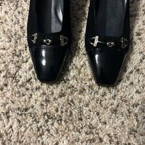 Elegant black heels with silver buckle detail. Perfect for any occasion.