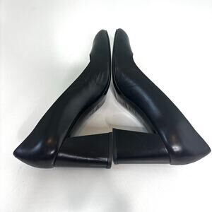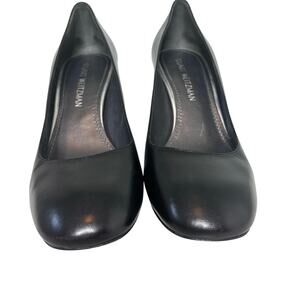 Stuart Weitzman Black Leather Block Heel Pump Rounded Square Toe