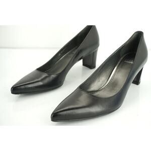 STUART WEITZMAN BLACK LEATHER CLASSIC POINTY TOE HEELS PUMPS SZ 8.5 NARROW $385