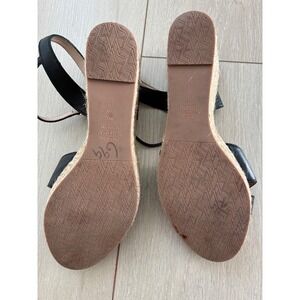 Stuart Weitzman Black Leather Espadrille Wedge Sandals Ankle Strap Size 7