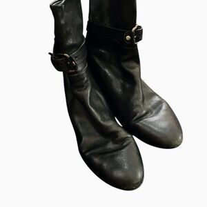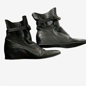 Stuart Weitzman Black Leather Gather Hidden Wedge Buckle Booties Boots 8.5