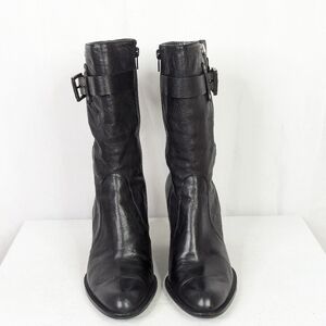 Stuart Weitzman Black Leather Heeled Midcalf Moto Boots - great condition