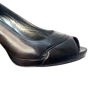 Stuart Weitzman Black Leather Peep Open Toe High Heel Luxury Pumps Size 7.5M