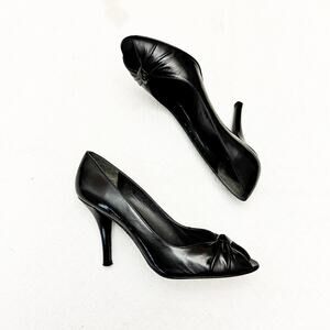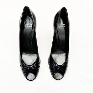 Stuart Weitzman Black Leather Peep Toe Bow Front Heel Pump Size 8.5