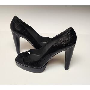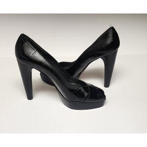 Stuart Weitzman Black Leather Peep Toe Ultra High Hee Pump Shoes Size 9M