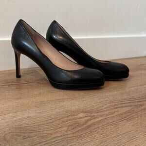 Elegant and timeless Stuart Weitzman black leather platform heels — made in Spain and never worn.