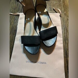 Stuart Weitzman Black Leather Sandals Made in Spain. Some Wear Dust Bag SZ 6 1/2
