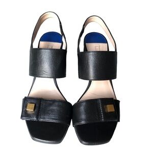 Stuart Weitzman Black Leather Slingback Round Suede Heel Sandal Size 7.5