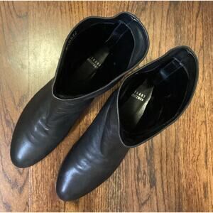 Stuart Weitzman Black Leather Slouch Gather Ankle Bootie Wedge Low Boots 10.5