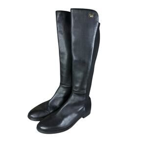 Stuart Weitzman Black Leather Stretch Riding Boots 8B Knee High SW Logo (defect)