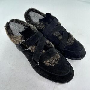 Stuart Weitzman Black Leather Suede Shoes US 8 Fur Sherpa Lined Sneaker Booties