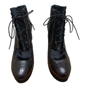 Stuart Weitzman Black Melange Leather Fur Stiletto Ankle Booties Sz 9.5 EUC