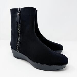 Stuart Weitzman Black Nylon Low Wedge Boots Women's 10.5N Side Zip Made in Spain