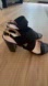 Patent leather block heel Stuart Weitzman sandal with elastic X across the top of foot. Super comfortable.