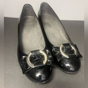 Stuart Weitzman Black Patent Flats with Silver Buckle SIZE 11.5 M