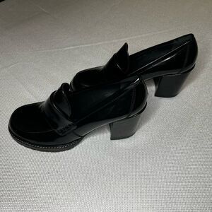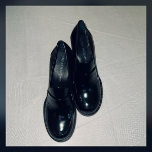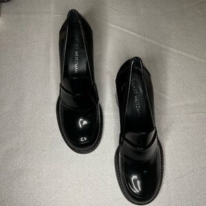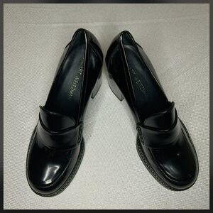 Stuart Weitzman Black Patent Leather Block Heel Loafers| Size 8