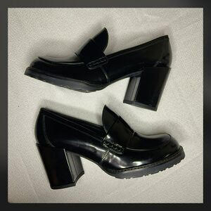 ✨ Timeless + versatile. These Stuart Weitzman black patent leather block heel loafers are the perfect blend of polish and comfort. Designed with a sleek silhouette and sturdy block heel, they can easily transition from work to weekend.