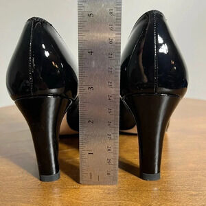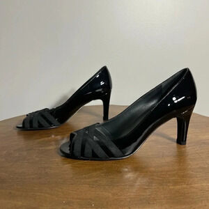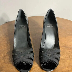 Stuart Weitzman Black Patent Leather Heel with Criss Cross Detail Size 6.5