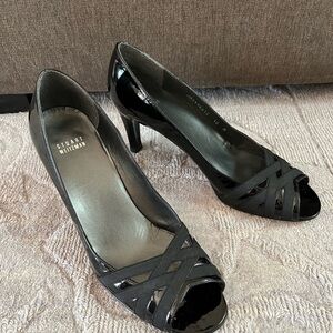 Stuart Weitzman Black Patent Leather Heels Pumps 10 Peep Toe Office Career EUC