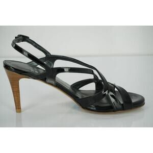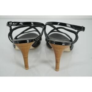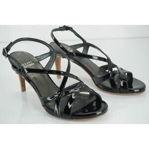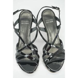 Stuart Weitzman Black Patent Leather Operetta Strappy Sandals SZ 6 Wide NIB $375