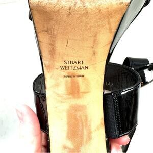 Stuart Weitzman Black Patent Leather Platform Sandal Heels Size 11