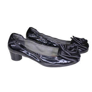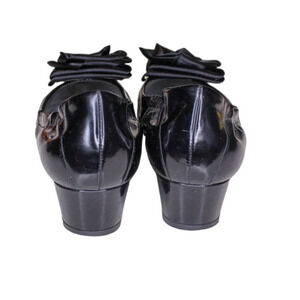 Stuart Weitzman Black Patent Leather Round Block Heel Shoes Satin Flower 6.5M